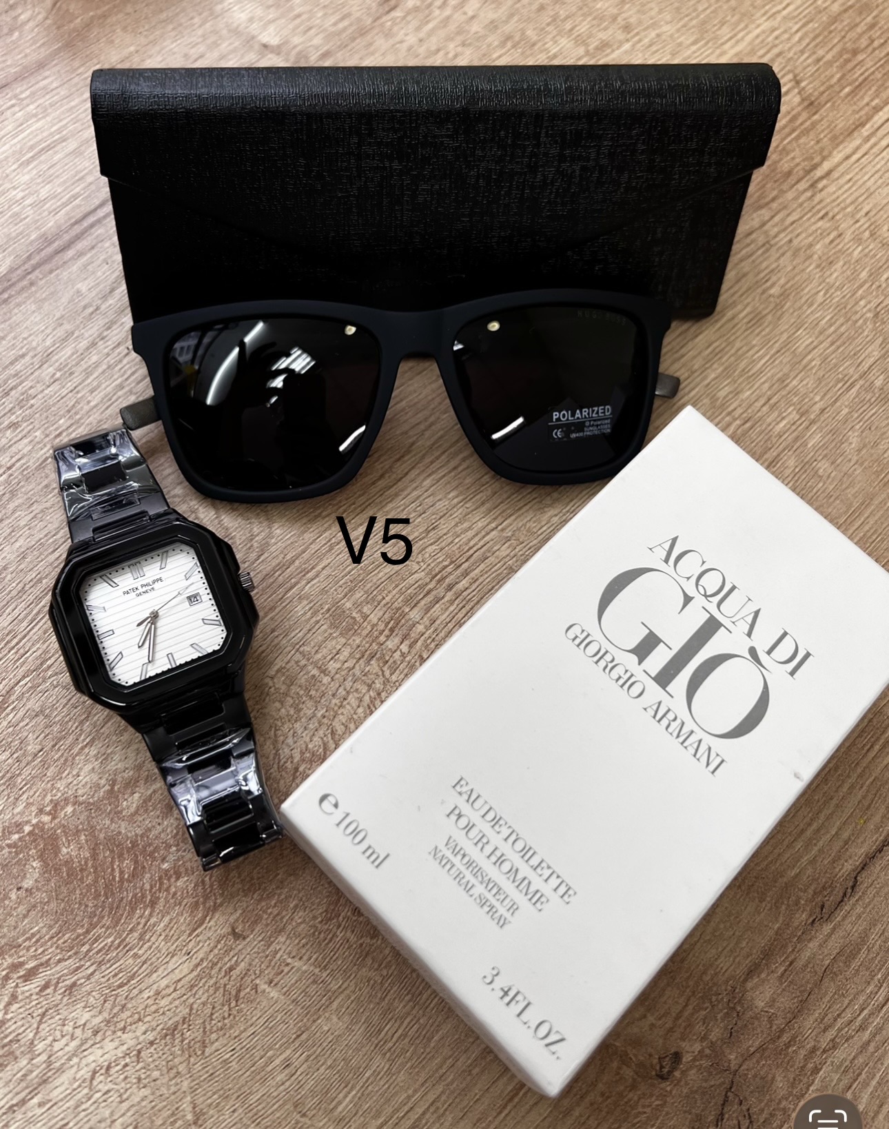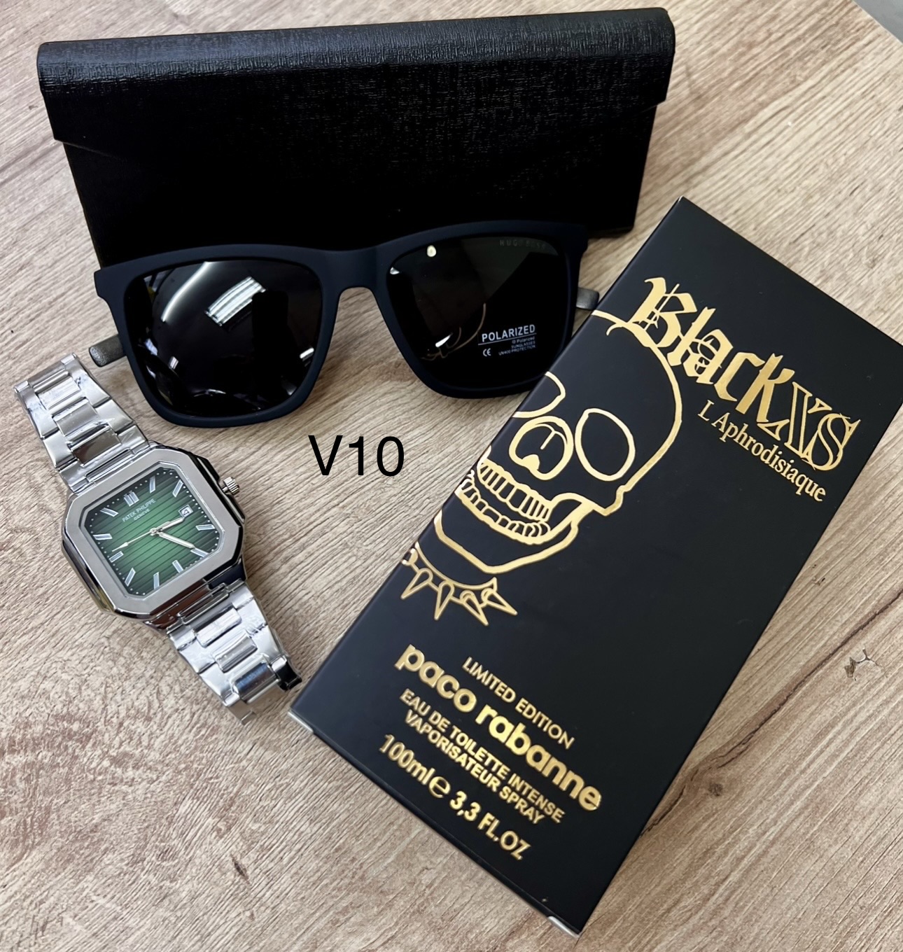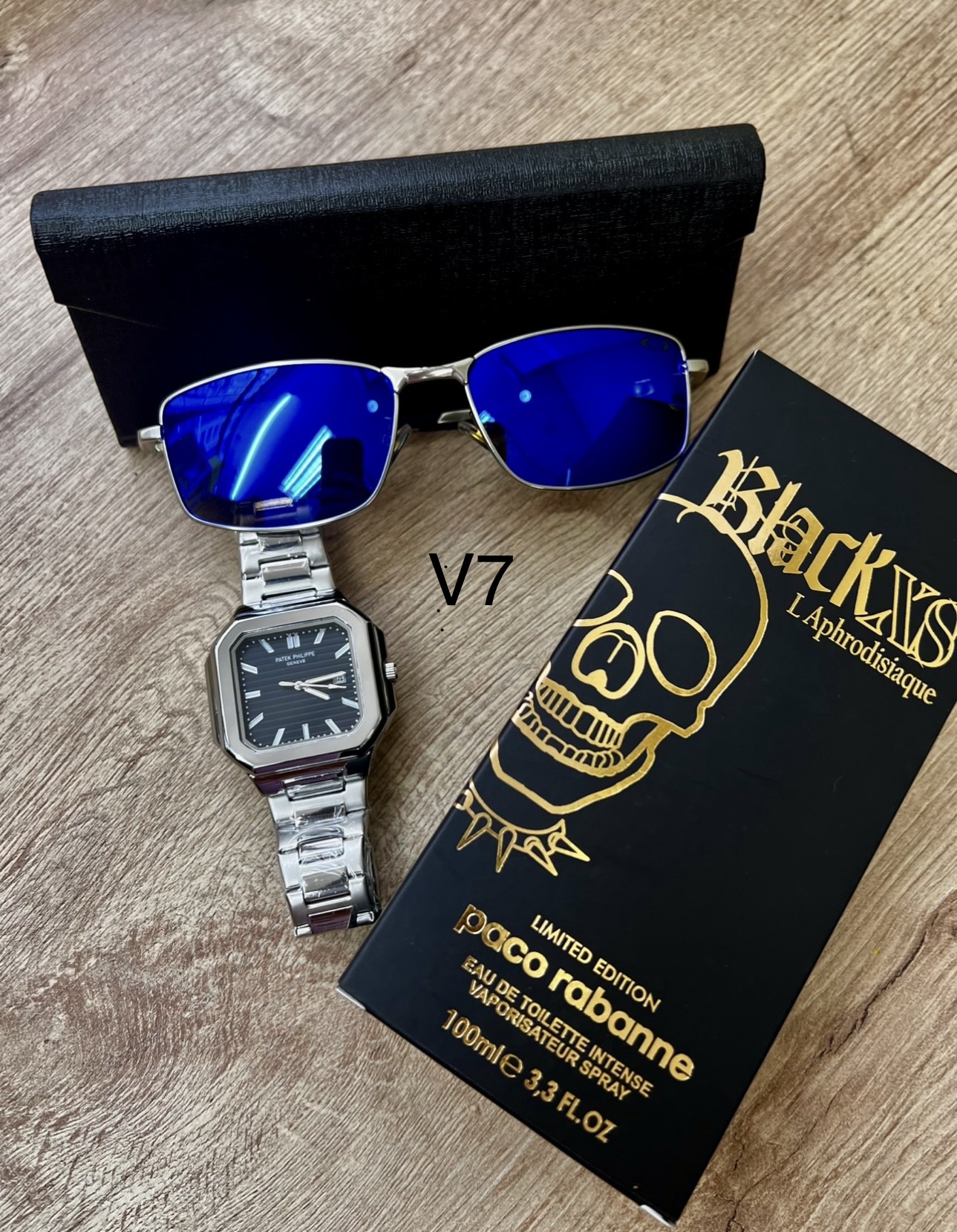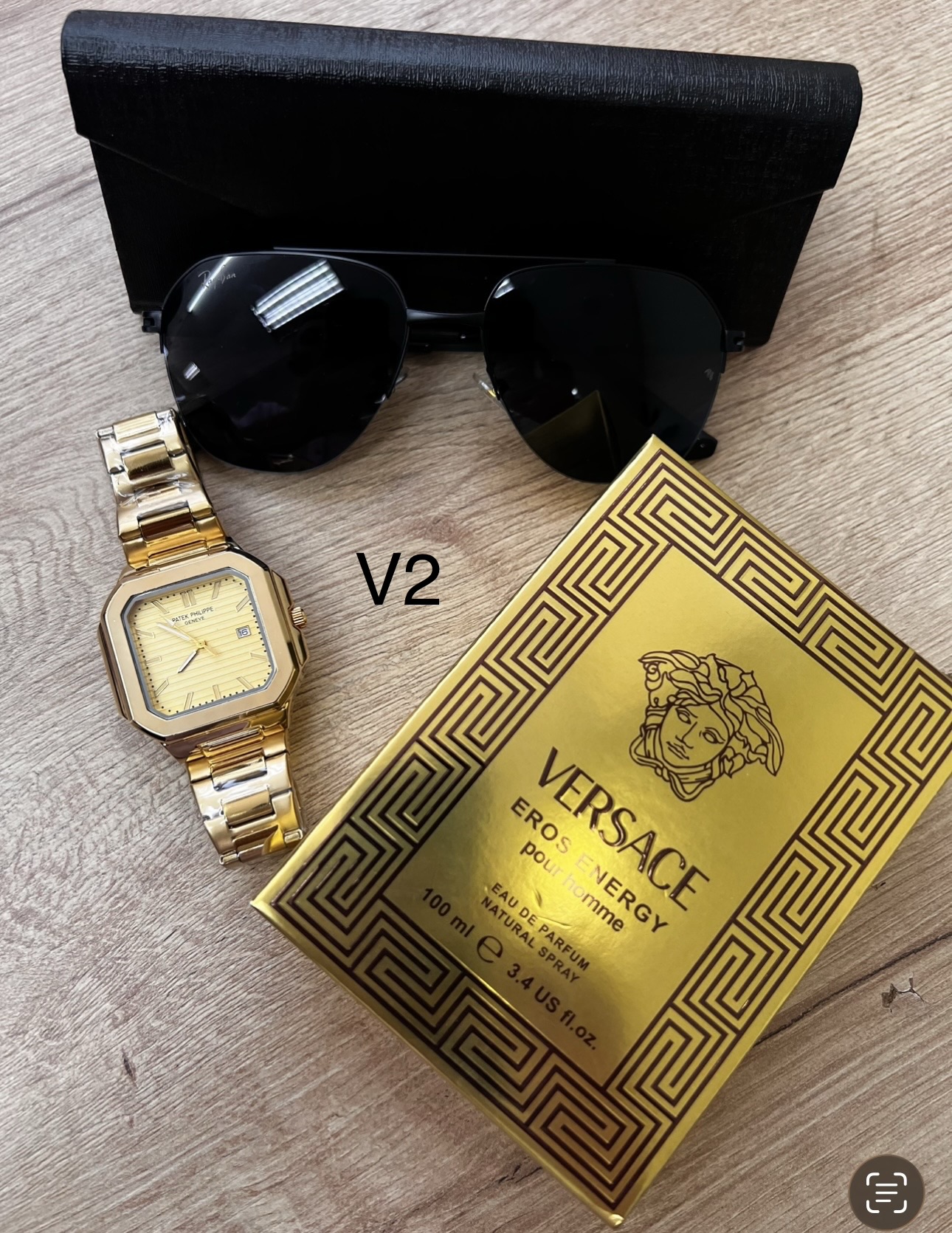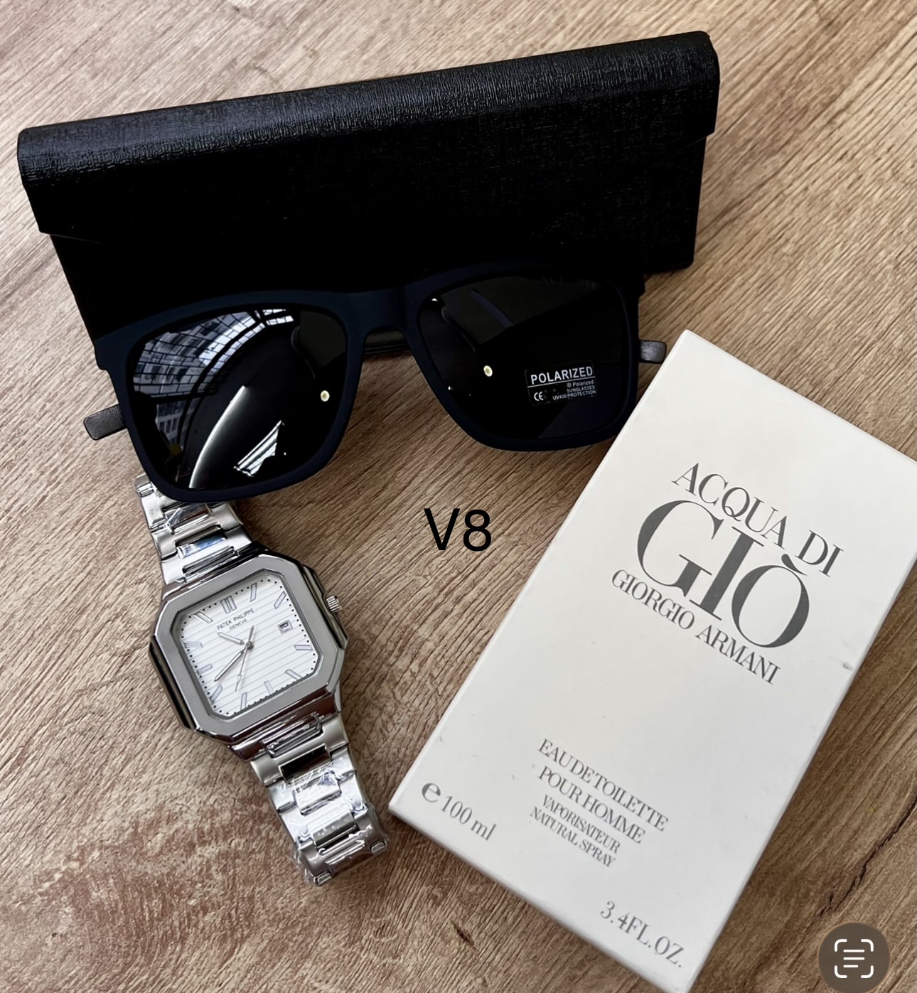 Descripción ⌚ Reloj Fili Triple A (A Pila) Diseño cuadrado moderno con acabado premium.Movimiento a pila preciso y confiable.Brazalete metálico brillante y resistente.Esfera detallada con marcadores elegantes.Ideal para uso diario o para complementar un outfit de impacto. 🕶️ Gafas con Protección Solar UVLentes con filtro UV400 para proteger tus ojos del sol.Modelo moderno tipo boutique.Incluye estuche rígido elegante.Perfectas para manejar, salir o dar un look más imponente. 👑 Perfume Triple A – Duración 6 HorasFragancia masculina intensa y seductora.Presentación elegante de 100 ml.Duración aproximada: 6 horas en piel.Opción ideal para uso diario, oficina o citas.🎁 Incluye todo esto:Reloj Fili Triple A ✔️Gafas con protección solar ✔️Perfume Triple A de larga duración ✔️Estuche de gafas ✔️💥 Un combo con estilo, calidad y presencia… perfecto para regalar o para elevar tu imagen.